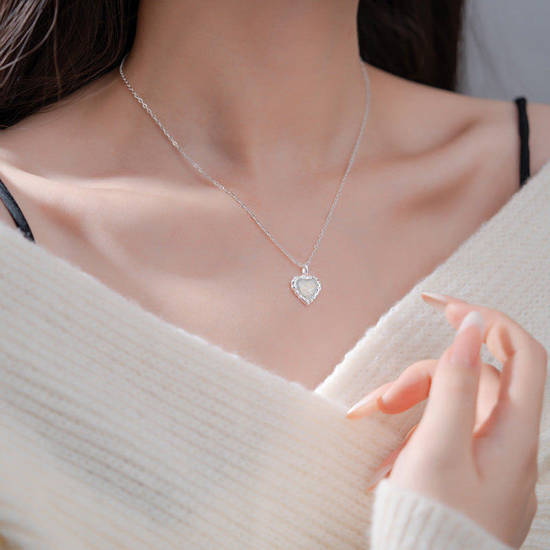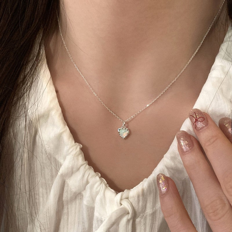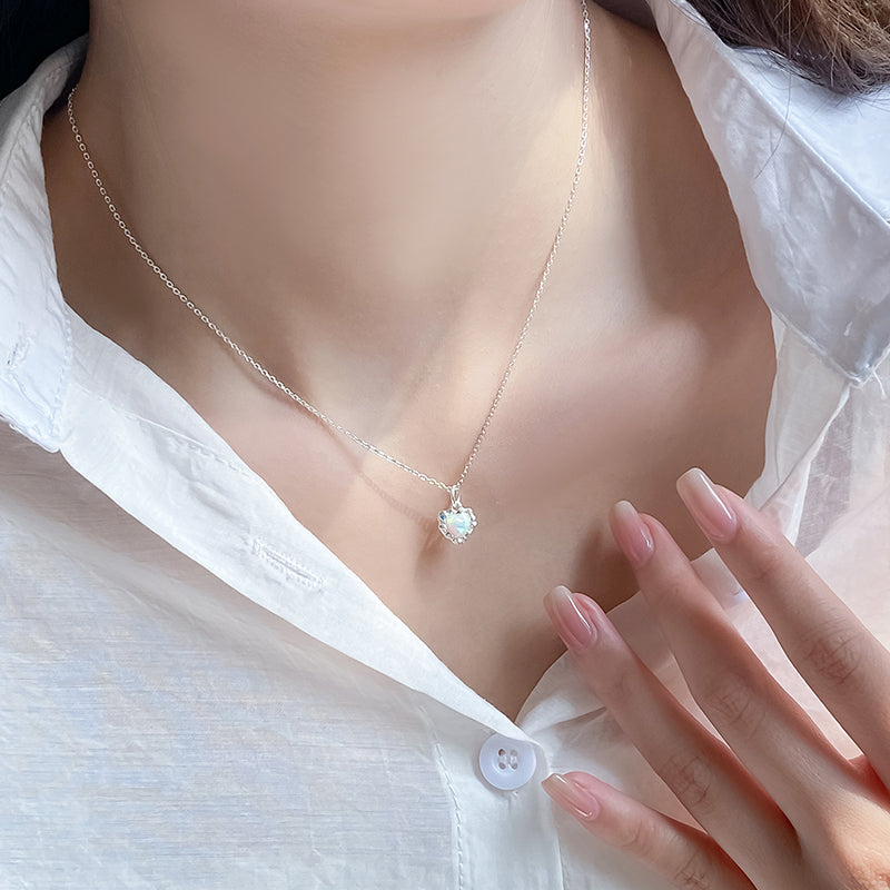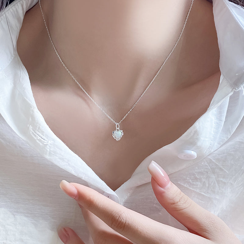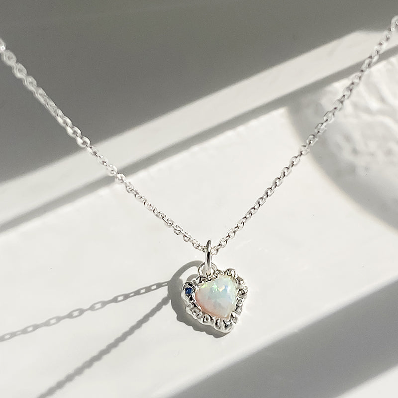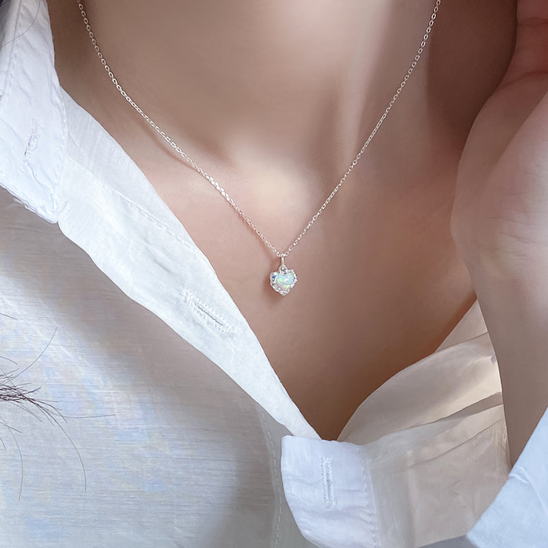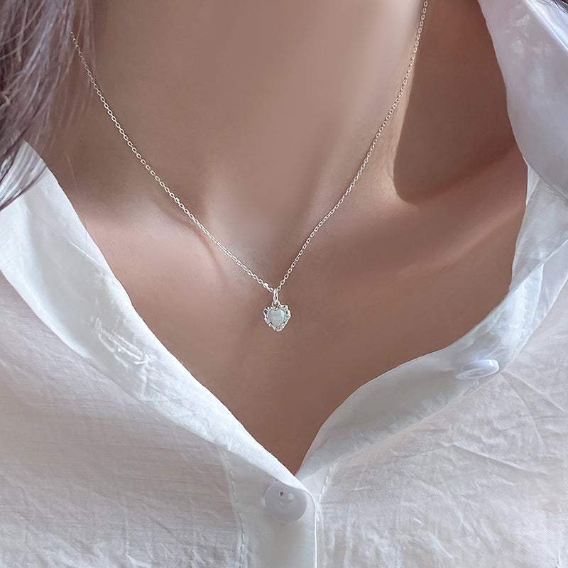NEXEVO - สร้อยคอ Aureline สร้อยคอเงิน ดีไซน์หัวใจมินิมอล ฝังโอปอล น้ำหนักเบา ของขวัญวันเกิด