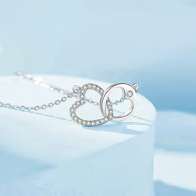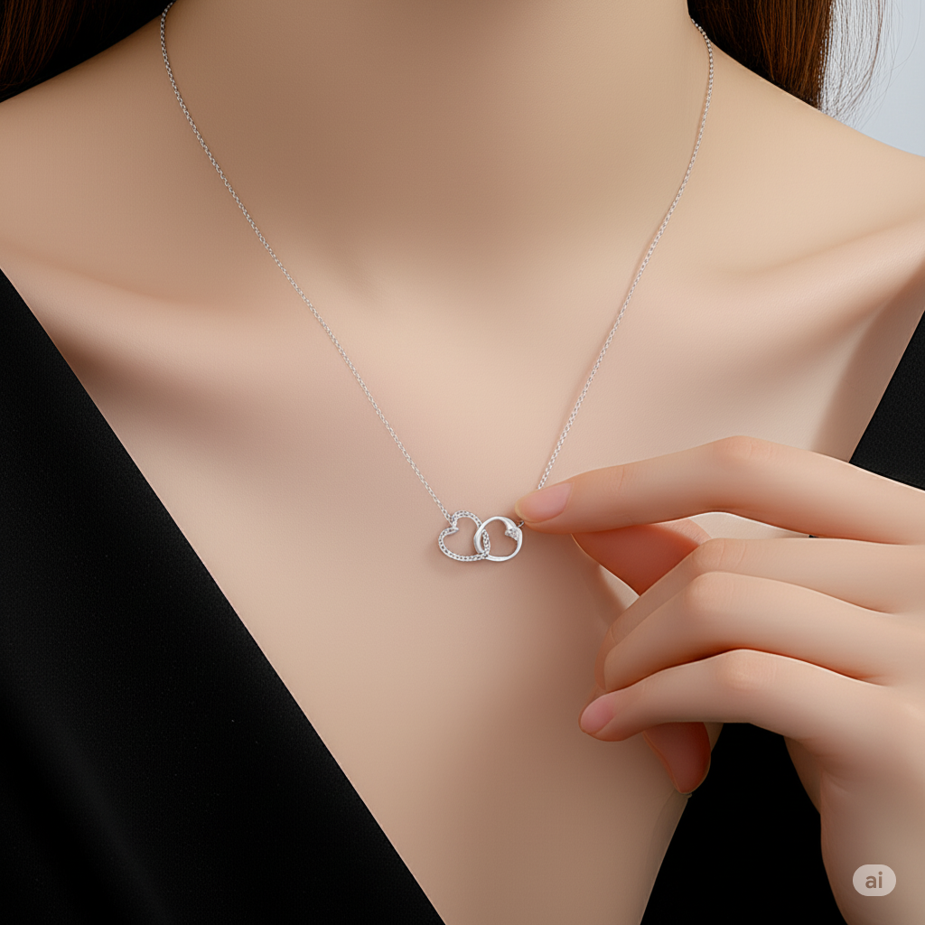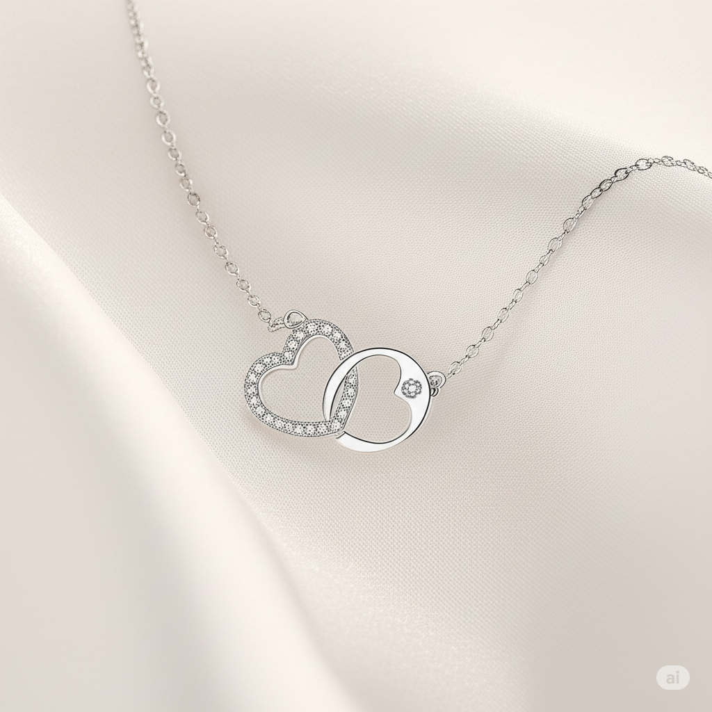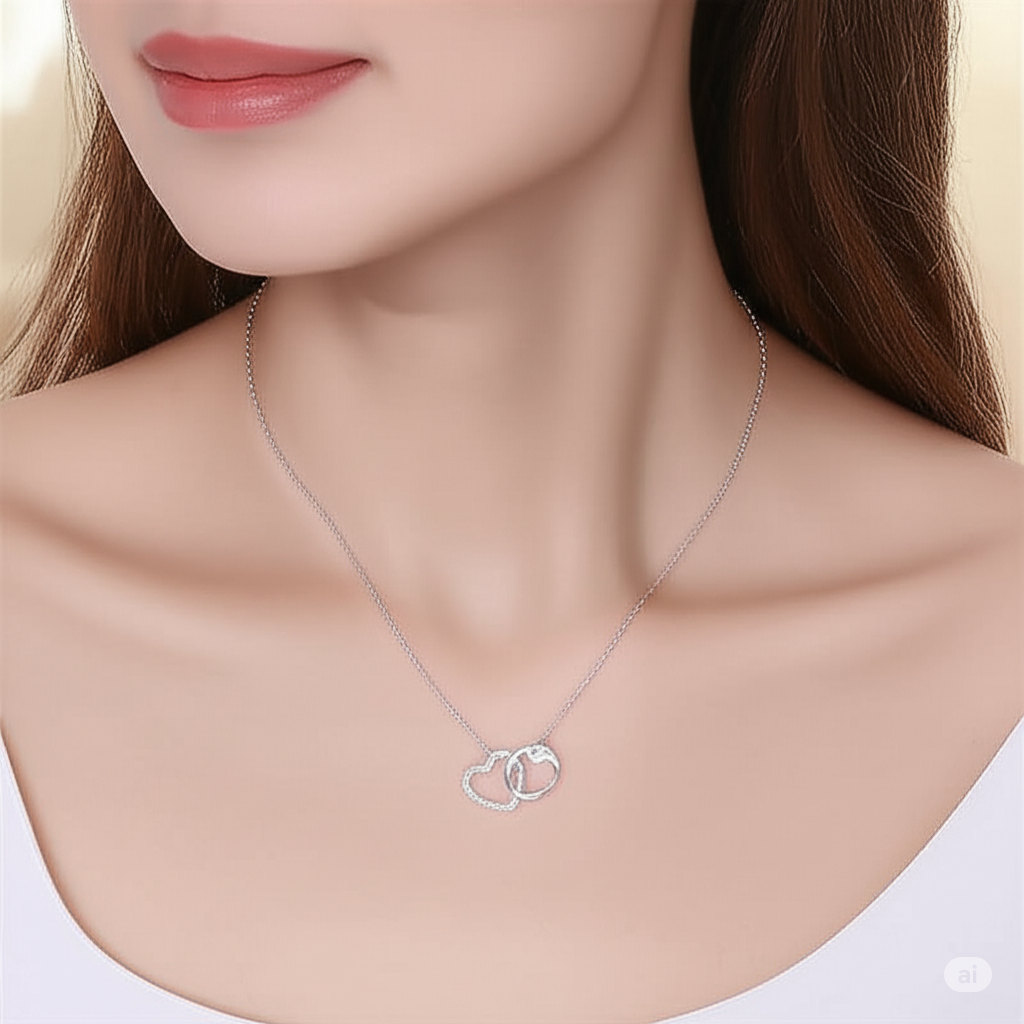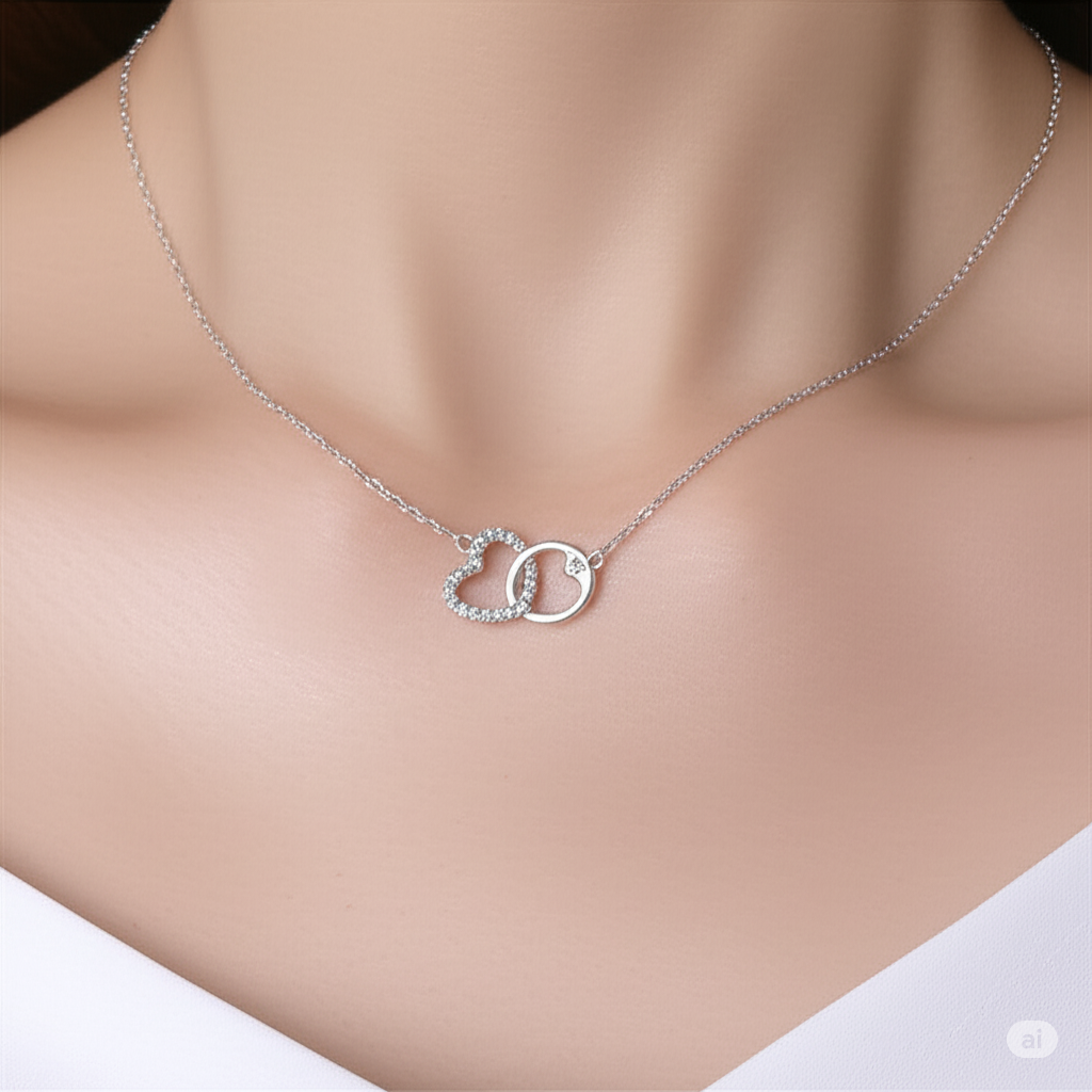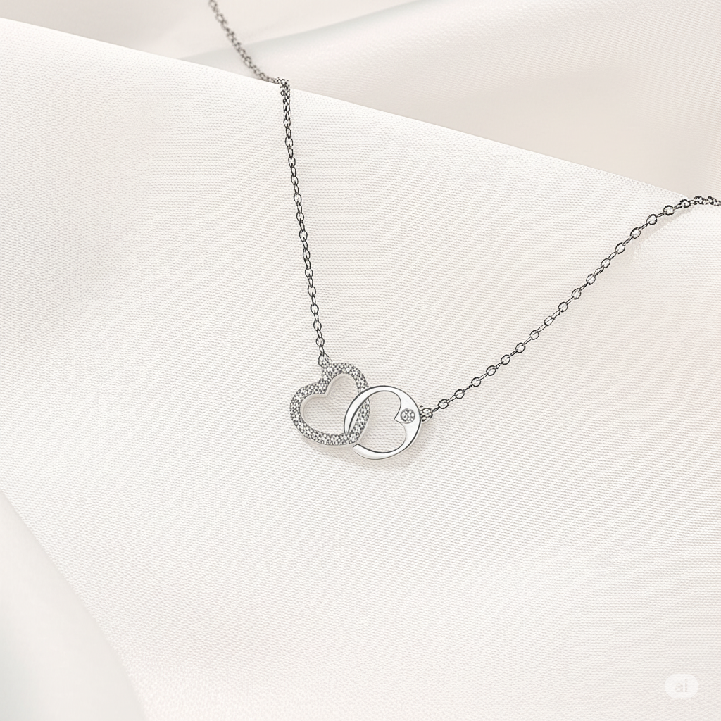 NEXEVO - สร้อยคอ Bélaire สร้อยคอเงิน ดีไซน์หัวใจและวงกลมไขว้ สไตล์มินิมอล น้ำหนักเบา ใส่ได้ทุกวัน