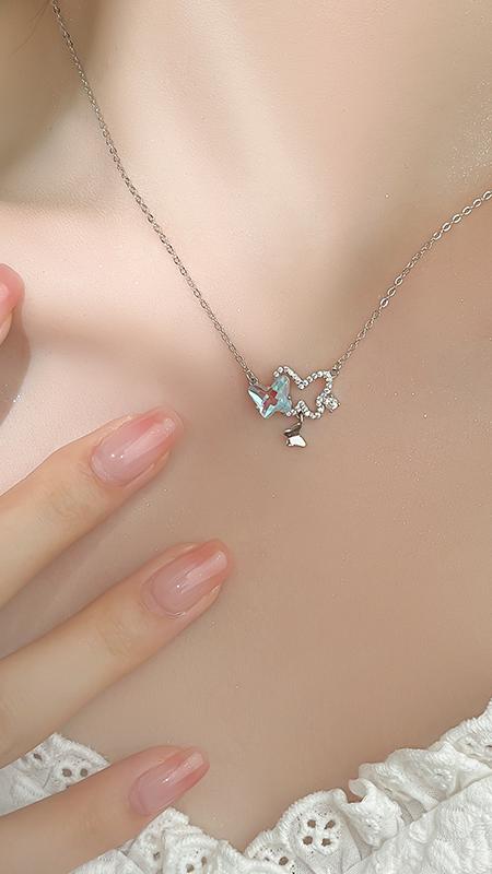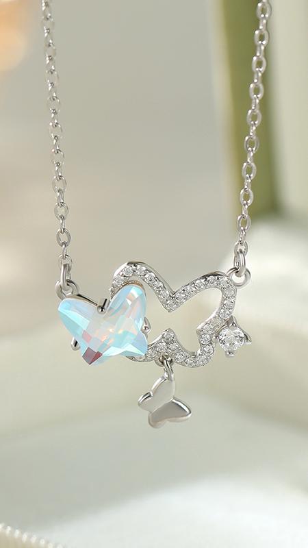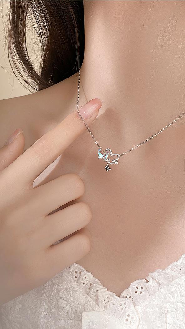 NEXEVO - สร้อยคอ Elysian Wings สร้อยคอเงิน ผีเสื้อคริสตัล สไตล์มินิมอล โรแมนติก เสริมเสน่ห์ ดึงดูดความรัก ปรับความยาวได้ น้ำหนักเบา ของขวัญให้คนสำคัญ
