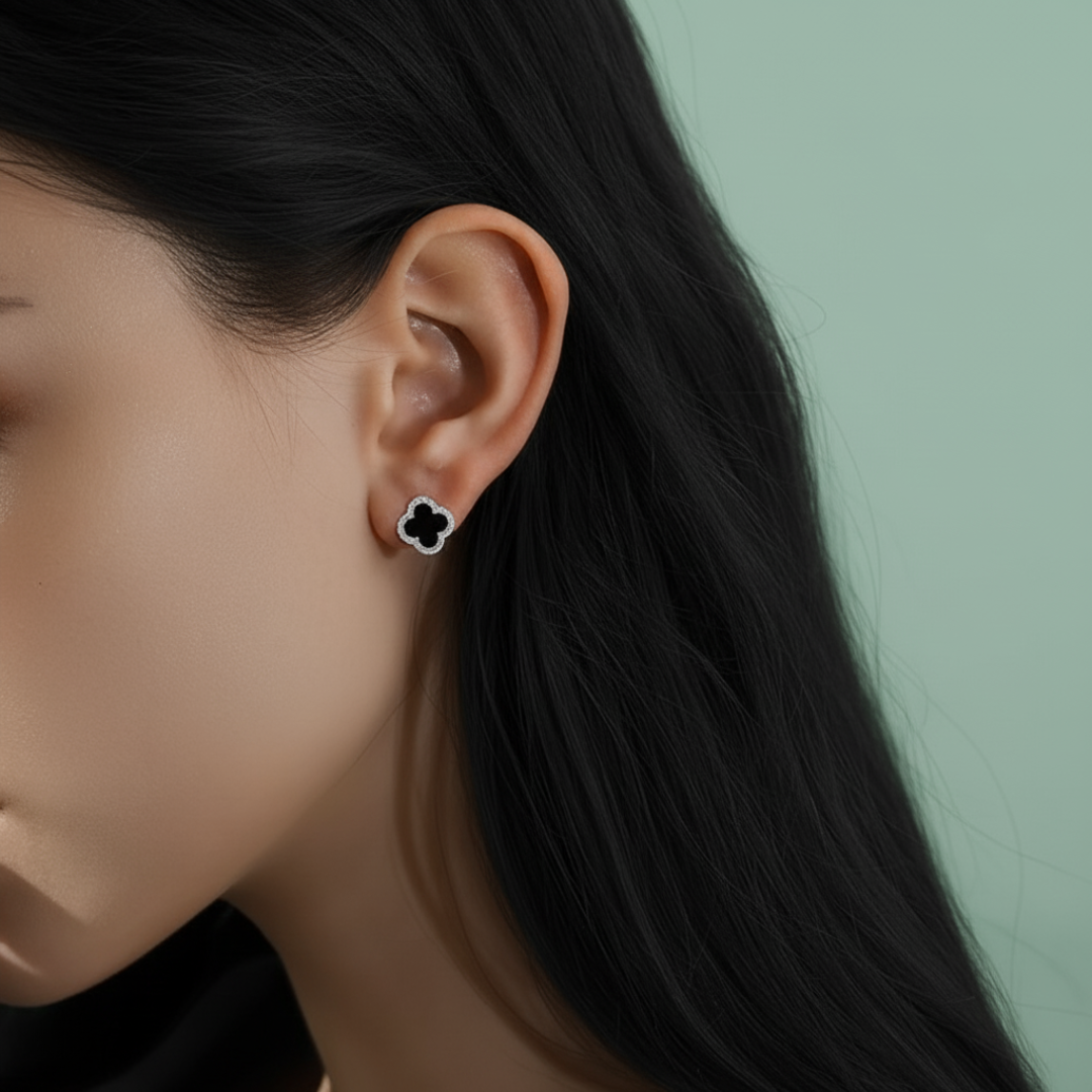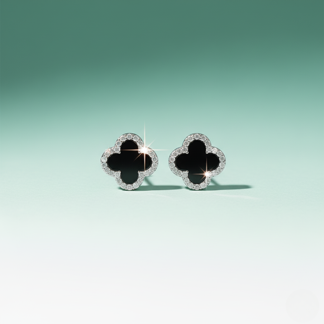 (มิดไนท์ โคลเวอร์) Midnight Clover คือเครื่องประดับที่สะท้อนความโชคดีที่มาพร้อมความสง่างาม ดอกโคลเวอร์สีดำเรียบหรู เปล่งประกายด้วยคริสตัล CZ ระยิบระยับรอบขอบ สัญลักษณ์แห่งความโชคดีที่งดงามและมีเอกลักษณ์