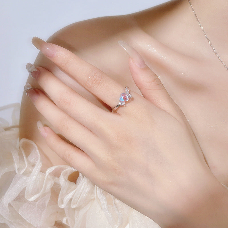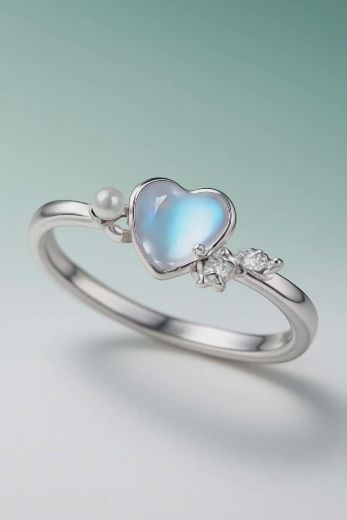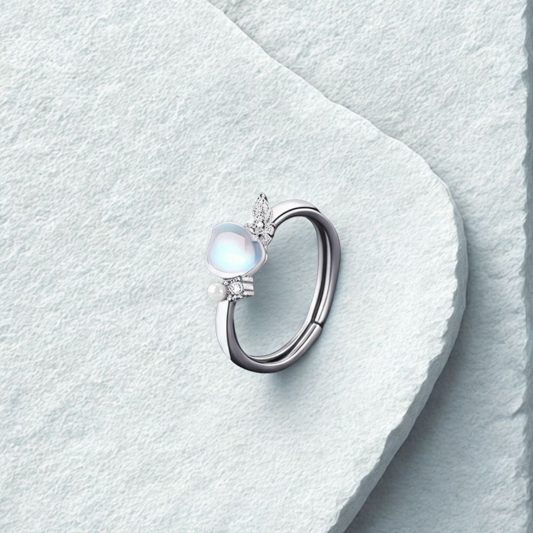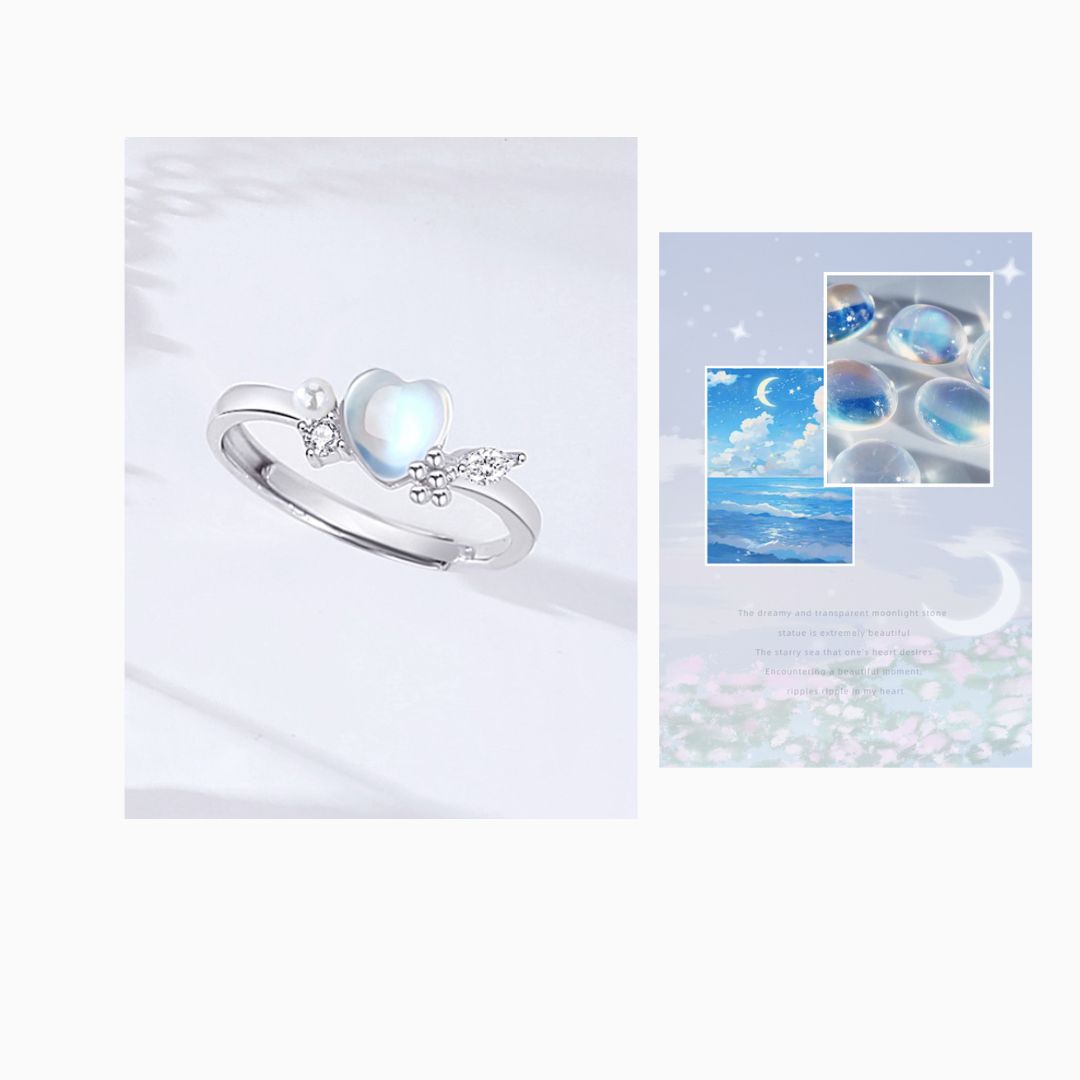 NEXEVO - แหวน Lunara แหวน หัวใจมูนสโตน สไตล์โรแมนติก น่ารัก ดึงดูดสิ่งดีๆ เข้ามาในชีวิต ปรับขนาดได้ น้ำหนักเบา ของขวัญให้คนสำคัญ